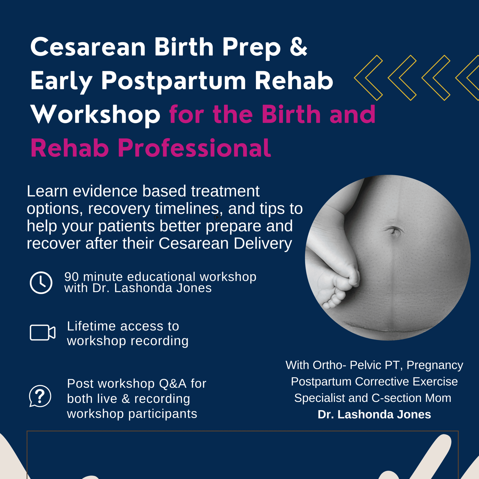 The most important window for recovery after Cesarean birth is the first few weeks after surgery. That’s when patients are getting out of bed, lifting their baby, and trying to move through pain and fatigue while still managing the demands of daily life. They’re getting in and out of a car for the first time after surgery.They’re going to a pediatrician visit within the first week.Some are traveling back and forth to the NICU.They’re navigating stairs, standing long enough to shower, and caring for other children at home. In some cases, they’re recovering from surgery without consistent help or managing newborn care as a single parent. And most of them are doing it without a clear plan. They’re told to “take it easy,” but the guidance is vague and not tailored to the actual demands of their day, so patients are left to figure out on their own how to move, lift, and function in a way that supports healing. This is where recovery starts to break down. Rehabilitation is often delayed or not introduced at all during this early window, even though this is when guidance has the greatest impact on mobility, pain, and return to daily activities. This workshop is designed to help clinicians step into that window with more clarity and confidence. In this 90-minute workshop, you will learn how to support patients before and after Cesarean birth using a structured, timeline-based approach to recovery. We will review how cesarean delivery impacts the abdominal wall and overall function, and how these changes influence movement, activity tolerance, and return to daily tasks. You will leave with practical strategies to guide early mobility, positioning, breathing, and activity progression in the first days and weeks postpartum, along with a clear way to communicate expectations, identify when to refer, and provide education patients can use immediately at home. Expand Your Practice Become the clinician patients and providers trust for early recovery after Cesarean birth Step into a gap in care that is currently underserved in most hospitals and communities Offer guidance during the most critical window of recovery instead of waiting until weeks later Build confidence addressing early postpartum needs, even without a specialty certification Strengthen your role within your team by providing clear, actionable recovery plans Improve patient outcomes by addressing mobility and function when it matters most Differentiate your services by offering structured, timeline-based recovery support Position yourself as a leader in early maternal surgery care within your setting ENROLL HERE